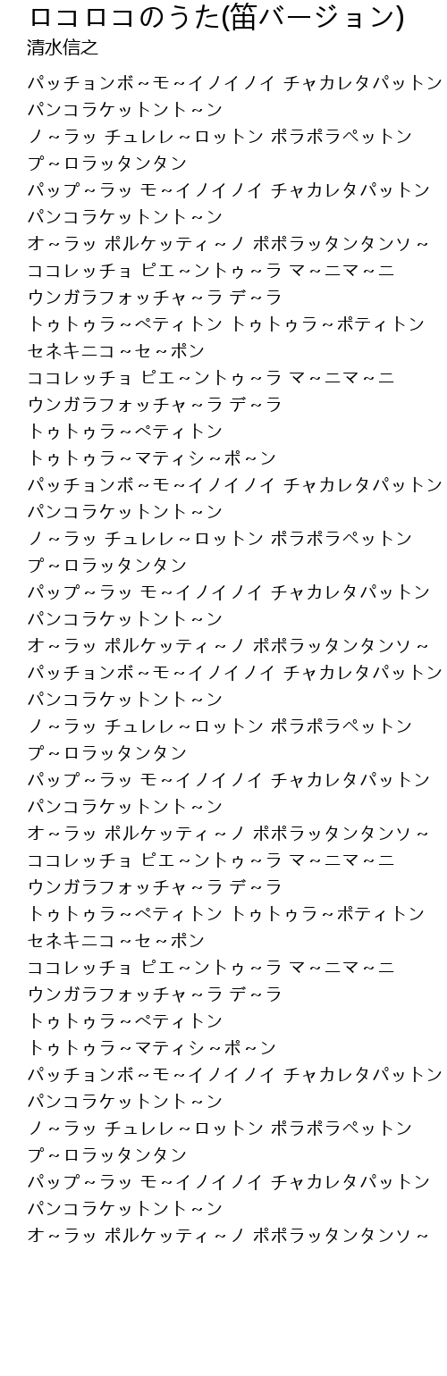 ノ~ラッ チュレレ~ロットン ポラポラペットン プ~ロラッタンタン |
