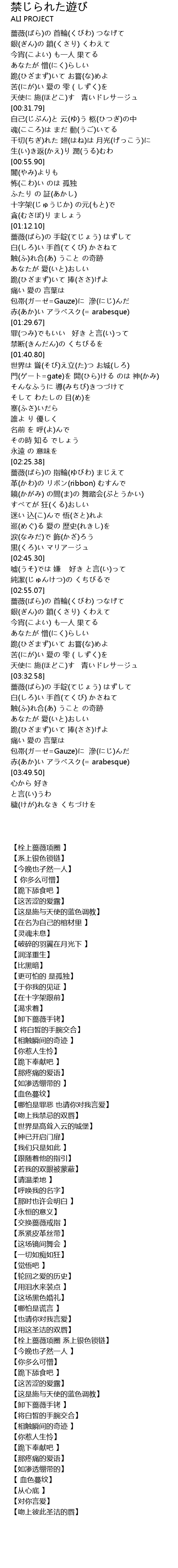 | [03:18.69] | 【栓上蔷薇项圈 系上银色锁链】 |