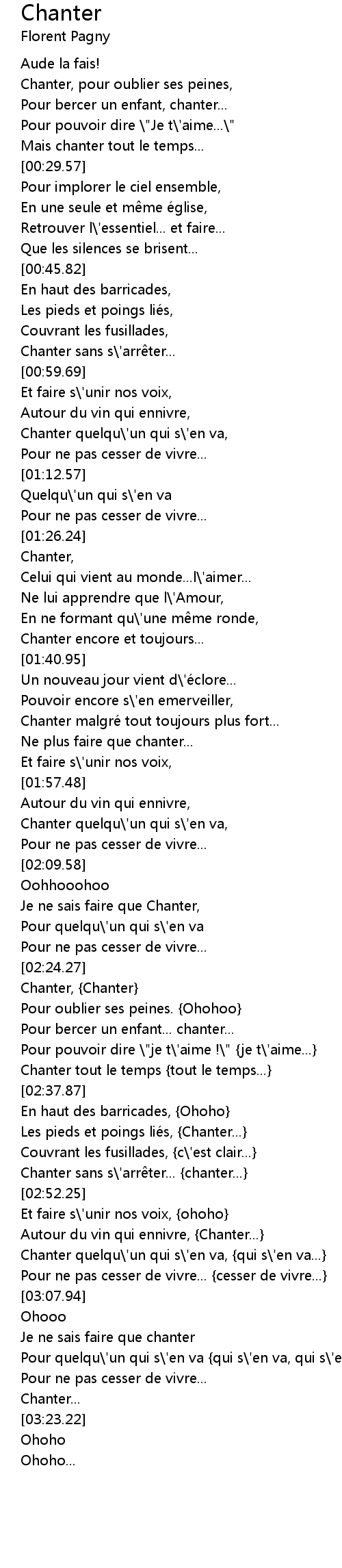 | [02:36.73] | Chanter tout le temps {tout le temps...} |