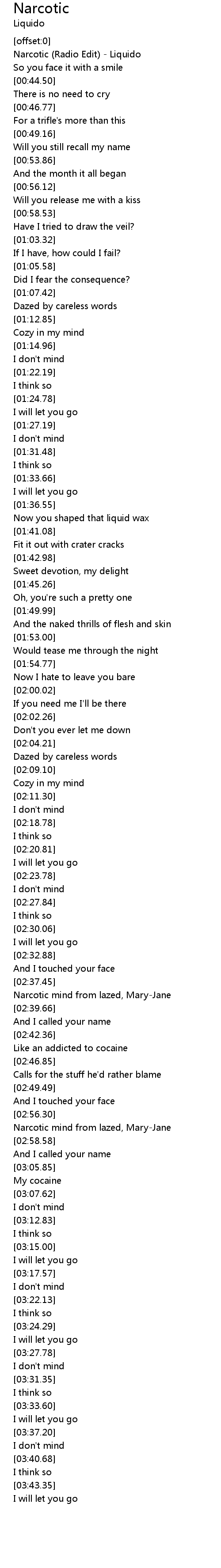 [00:01.20] Narcotic (Radio Edit) - Liquido