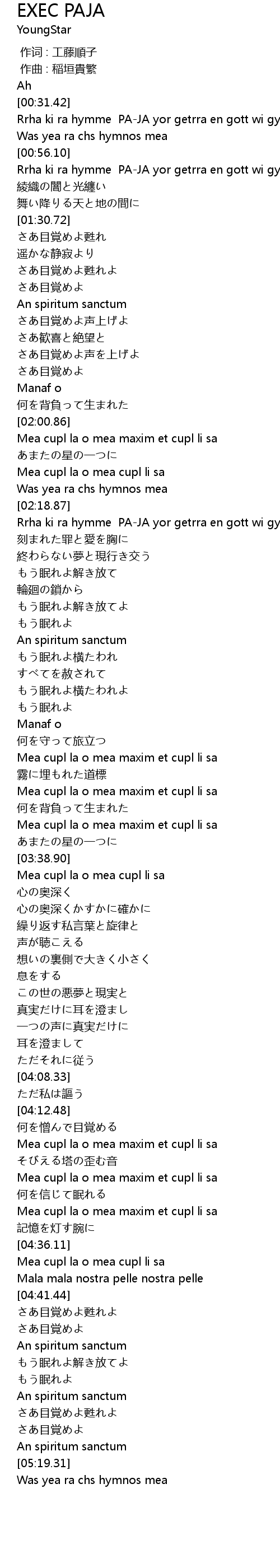 | [00:46.10] | Was yea ra chs hymnos mea |