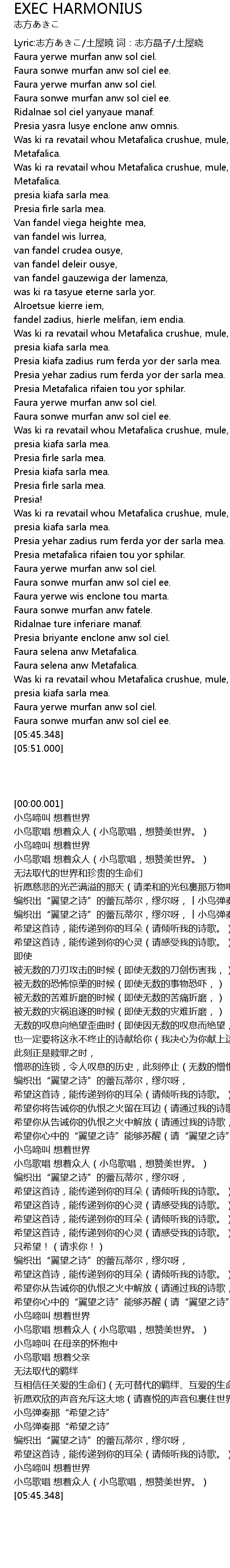 | [04:53.841] | 小鸟弹奏那“希望之诗” |