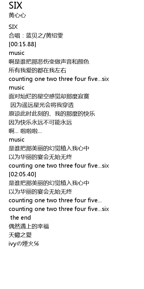 | [01:54.52] | counting one two three four five...six |