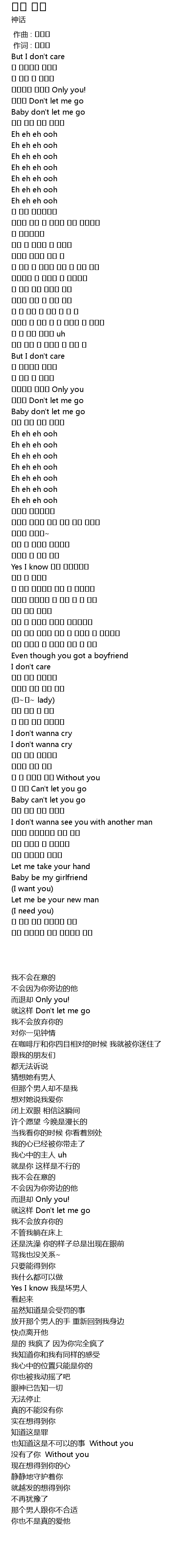 | [03:40.870] | 너 없인 Can't let you go |