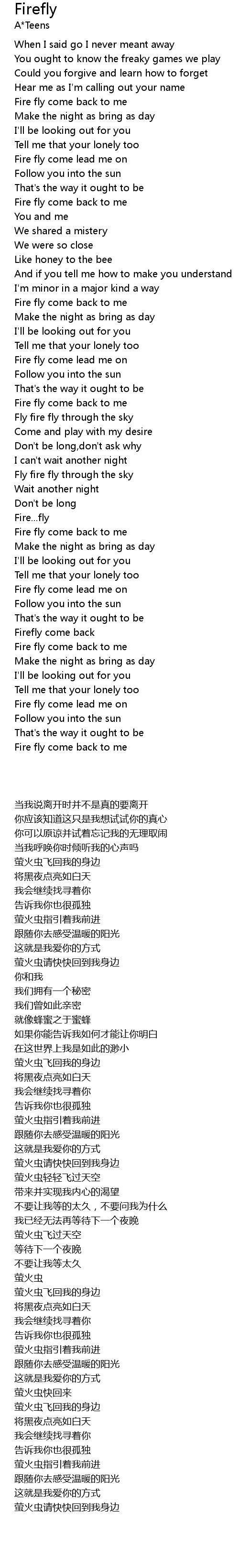 Fire fly come back to me |