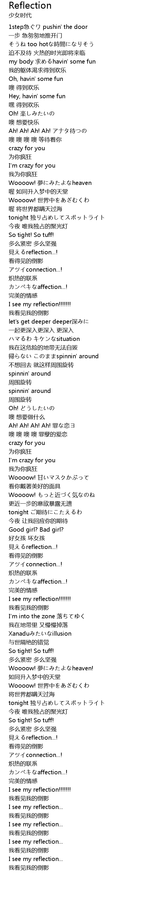 | 歌曲 | Reflection |