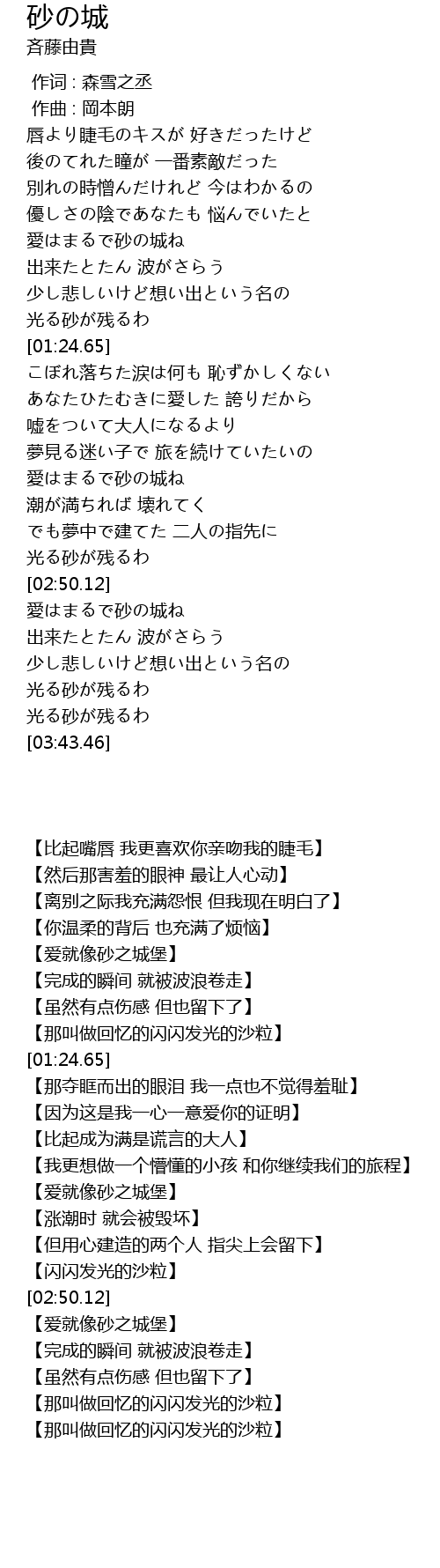 | [03:15.85] | 【完成的瞬间 就被波浪卷走】 |