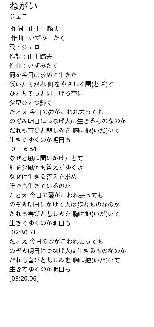 | [02:04.47] | のぞみ明日にかけて人は歩むものなのか |