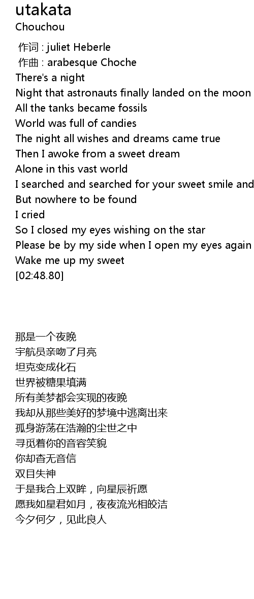 | [02:06.44] | 于是我合上双眸,向星辰祈愿 |