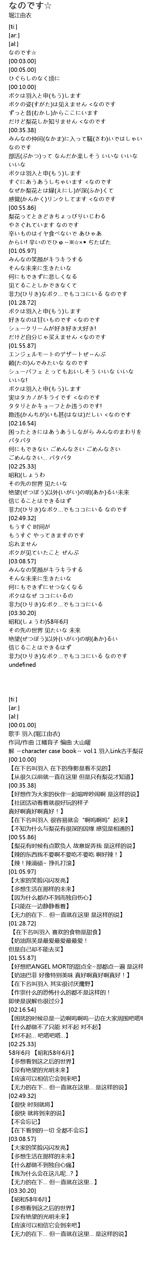 | [00:03.00] | 歌手 羽入(堀江由衣) |