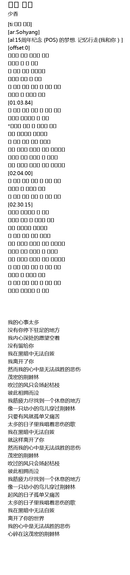| [02:31.54] | 茂密的荆棘林 |