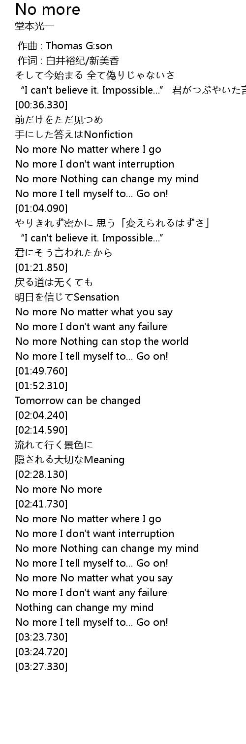 | [02:29.800] | No more No more |