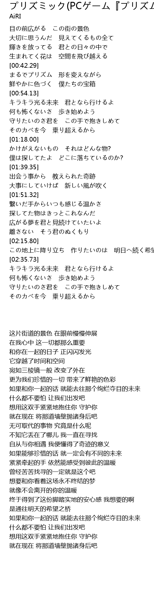| [00:42.63] | まるでプリズム 形を変えながら |