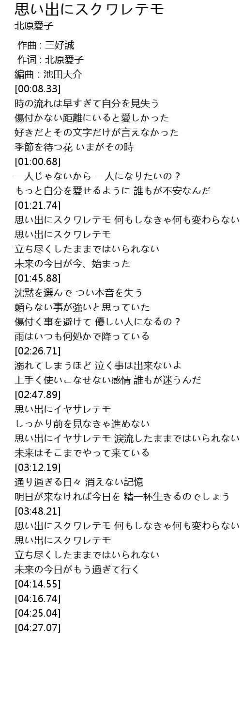 | [00:01.00] | 作词 : 北原愛子 |