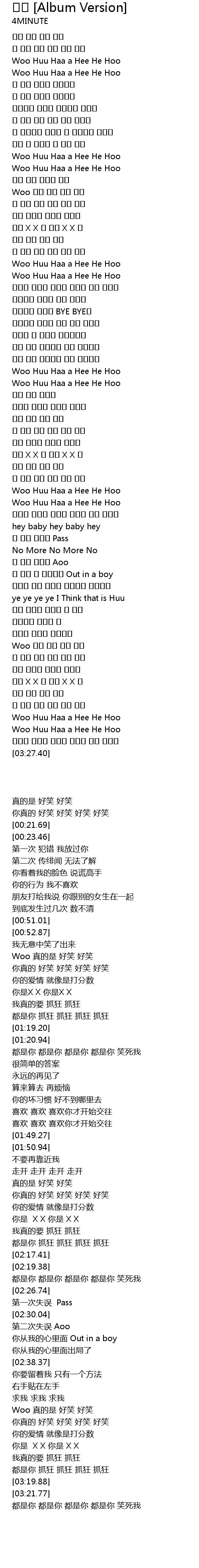 | [00:57.90] | Woo 너무 너무 웃겨 웃겨 |