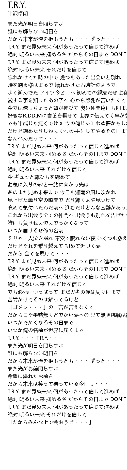 | T.R.Y. まだ見ぬ未来 何があったって信じて進めば | |
