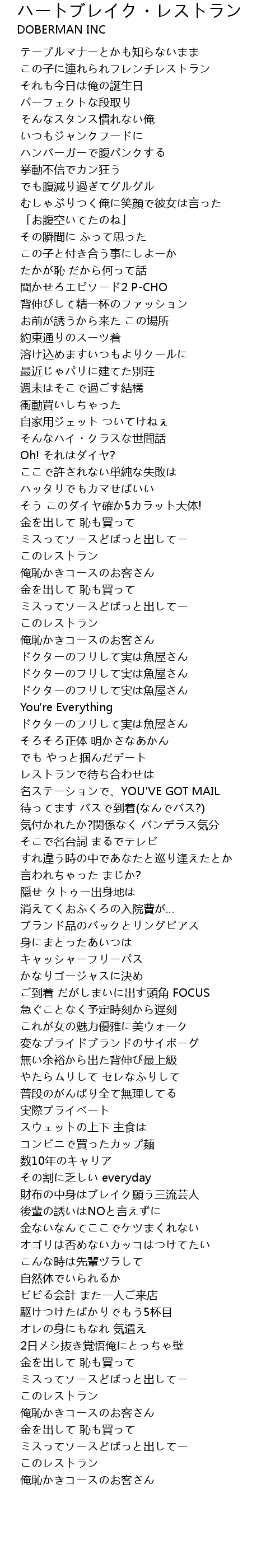| 歌曲 | ハートブレイク・レストラン |