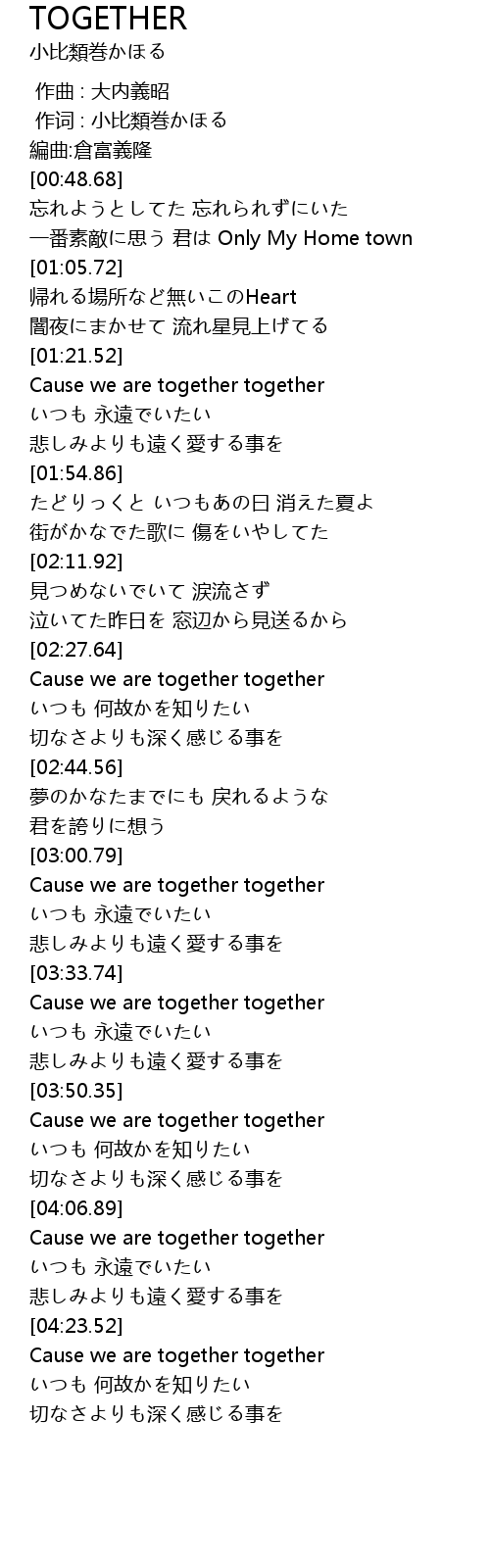 | [04:23.78] | Cause we are together together |