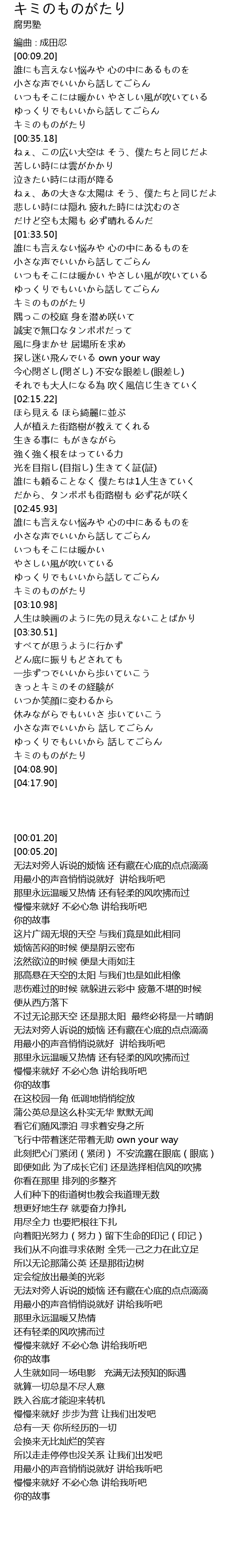 | [01:54.65] | キミのものがたり |