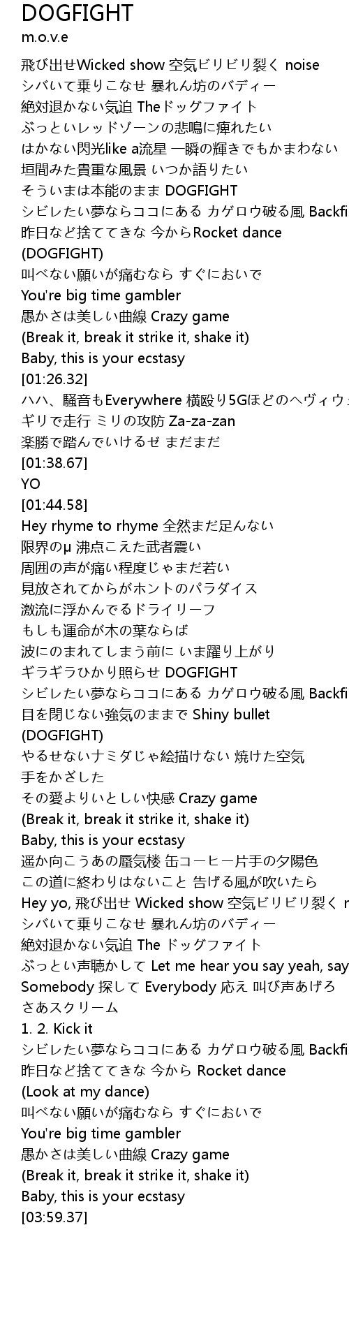 | [00:54.54] | そういまは本能のまま DOGFIGHT |
