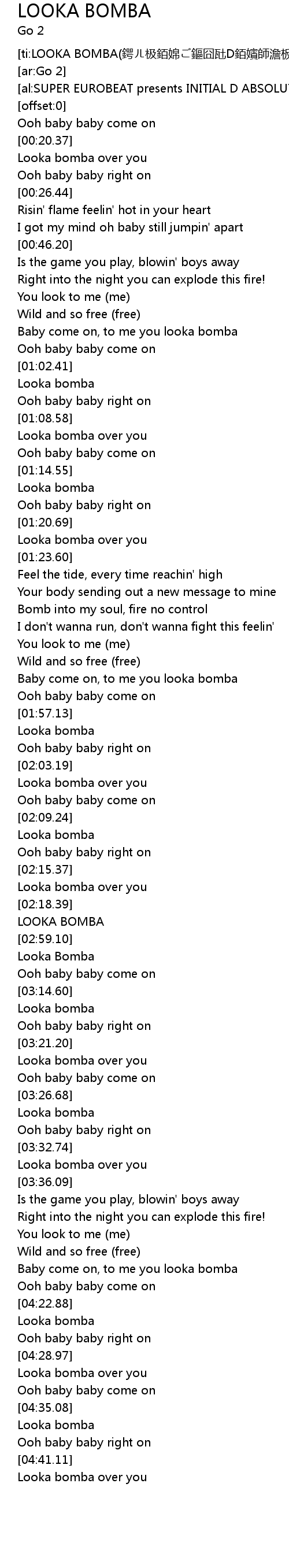 | [00:56.03] | Baby come on, to me you looka bomba |