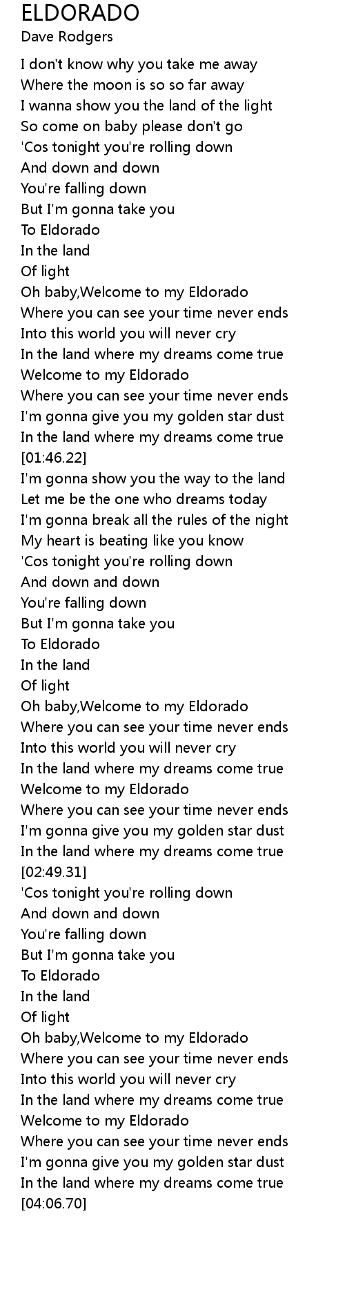 [03:40.74] Oh baby,Welcome to my Eldorado