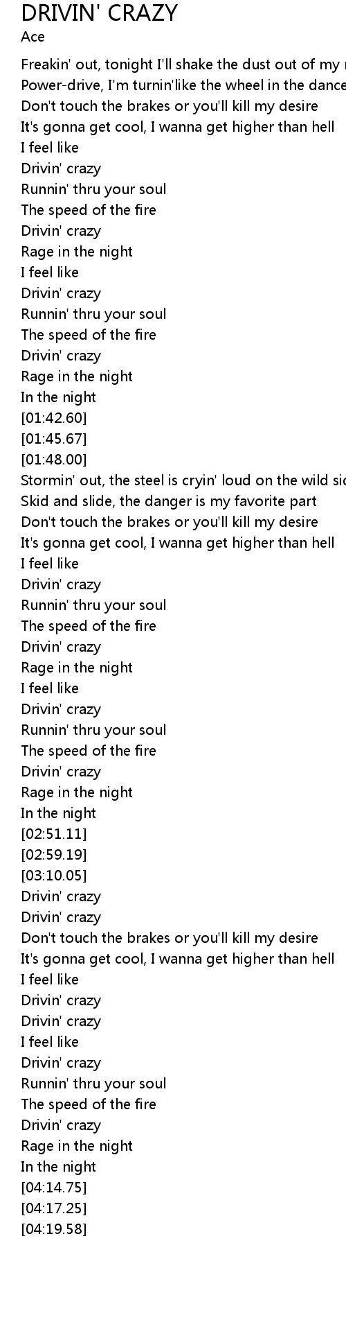 Freakin' out, tonight I'll shake the dust out of my mind |