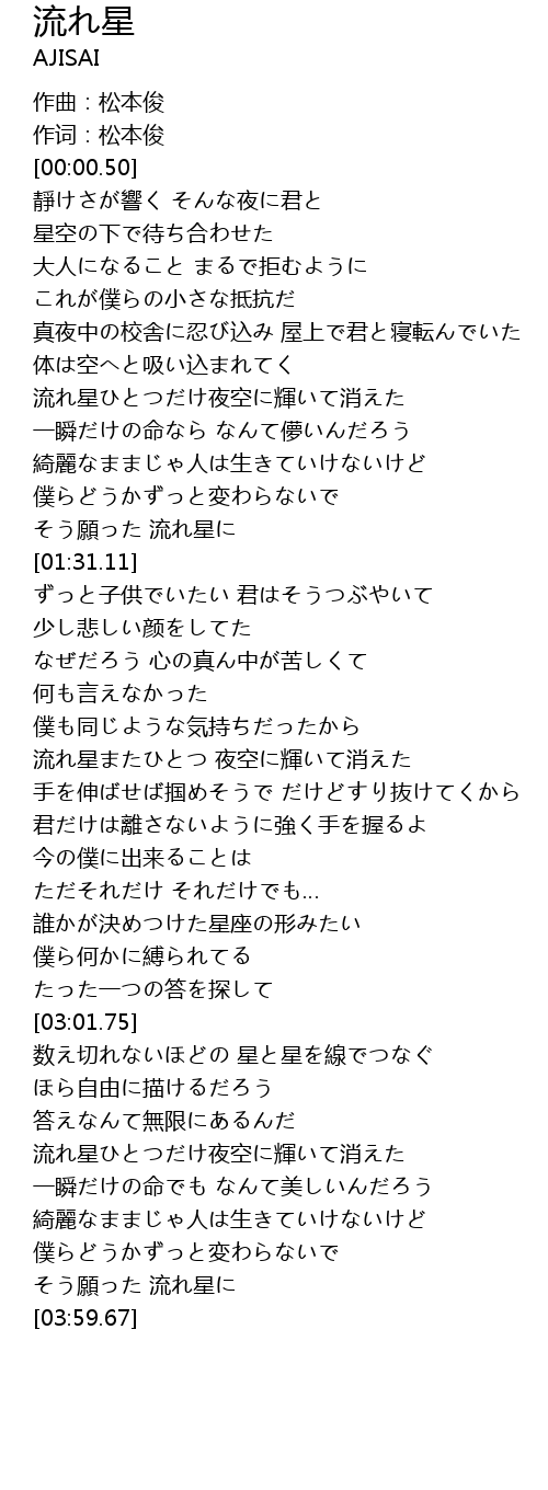 | [02:11.29] | 流れ星またひとつ 夜空に輝いて消えた |