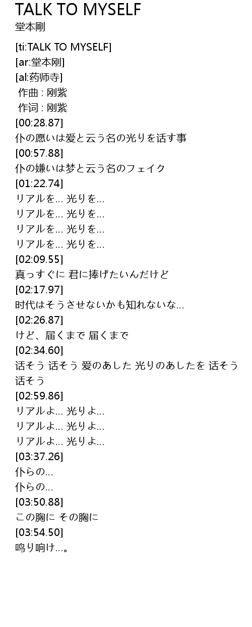 | [03:16.22] | リアルよ… 光りよ… |