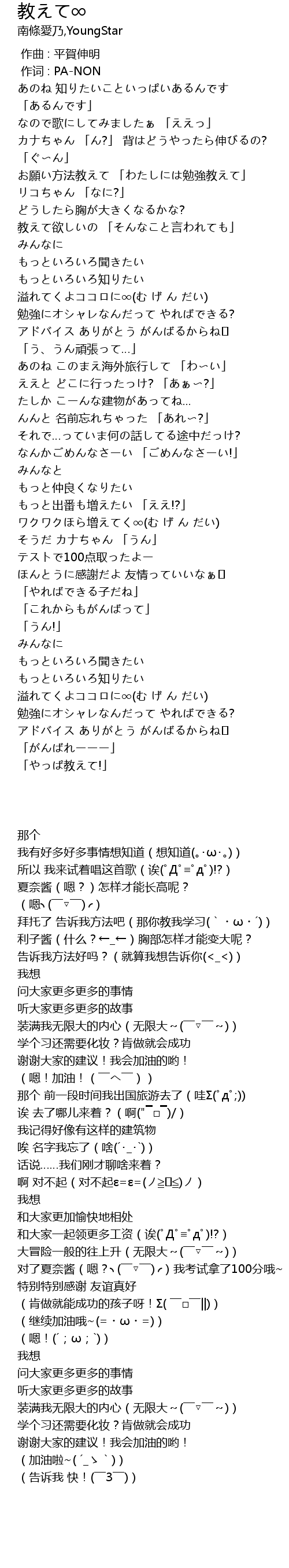 | [00:38.87] | お願い方法教えて 「わたしには勉強教えて」 |
