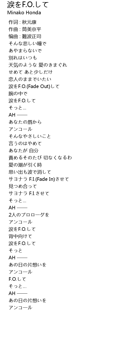 | [00:57.094] | 涙をF.O.(Fade Out)して |