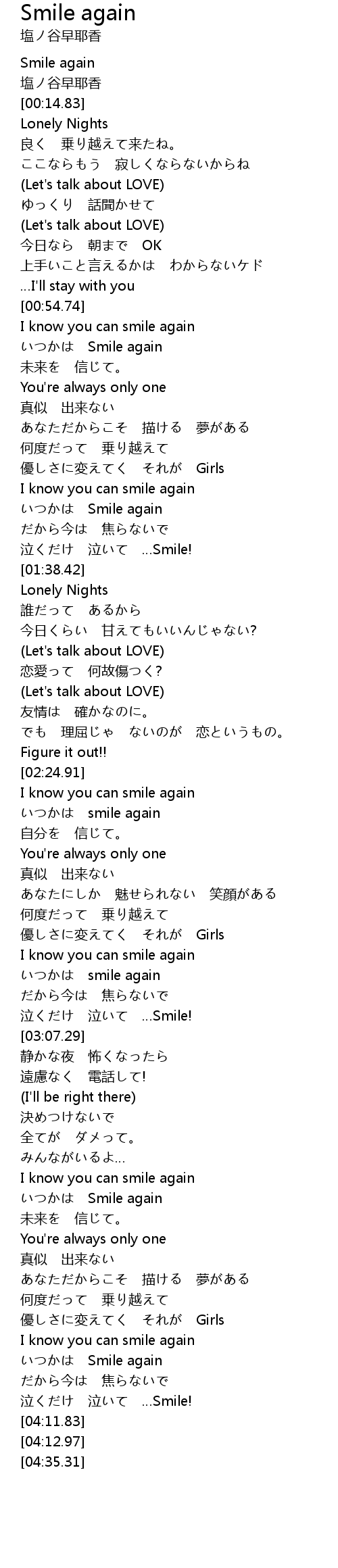 | [03:03.42] | 泣くだけ 泣いて …Smile! |