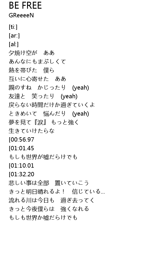 | [01:40.91][01:32.20][01:23.38][01:14.70] | BE FREE |
