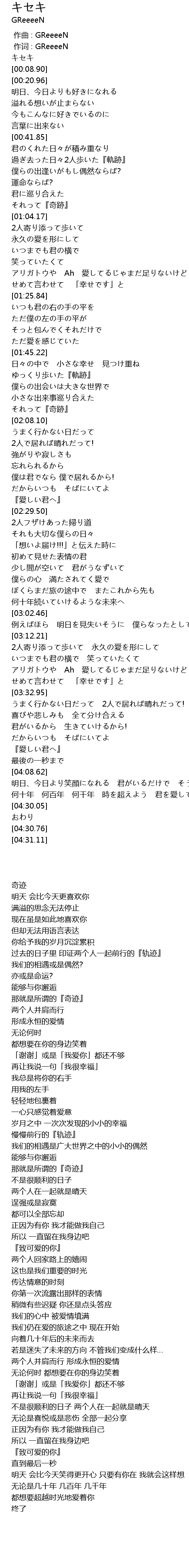 | [00:01.03] | キセキ |