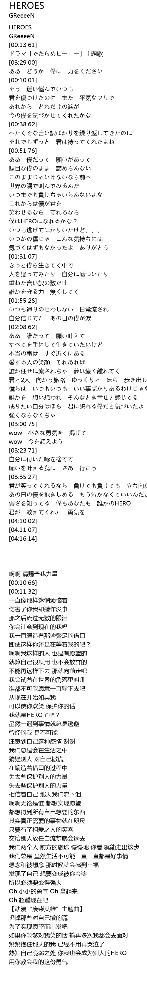 | [03:55.48] | 弱さを知ってる 僕もあなたも 誰かのHERO |