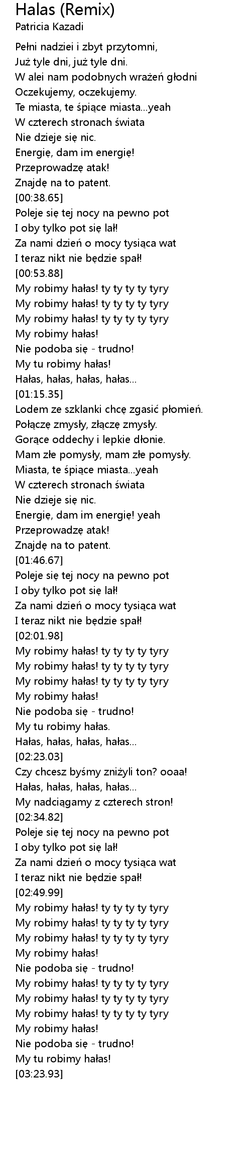 | [02:20.13] | Hałas, hałas, hałas, hałas... |