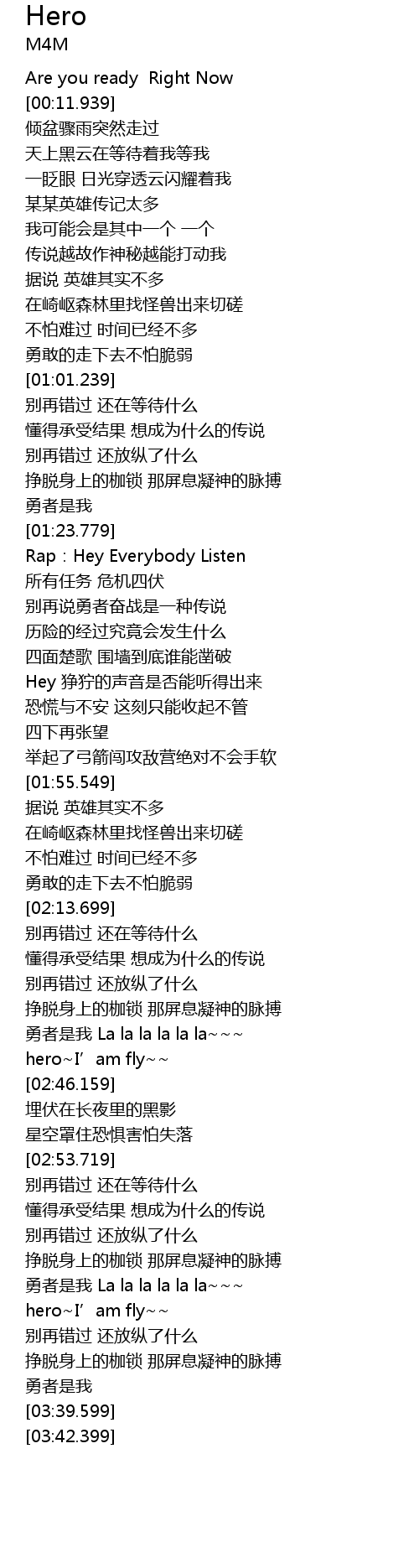 | [03:25.999] | hero I' am fly |