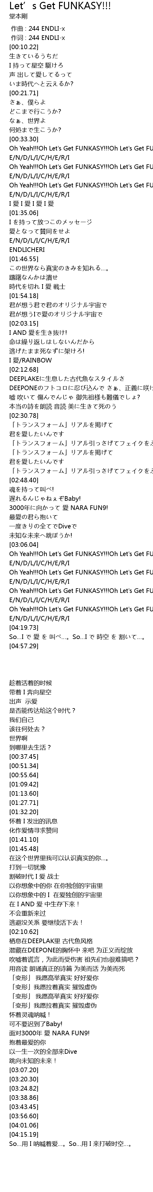 | [03:43.45] | Oh Yeah!!!Oh Let's Get FUNKASY!!!Oh Let's Get FUNKY!!! |