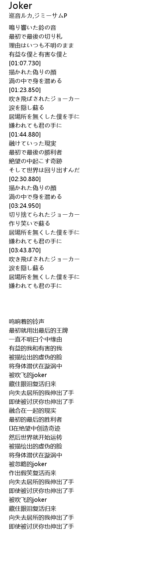 | [03:26.550] | 被忽略的joker |