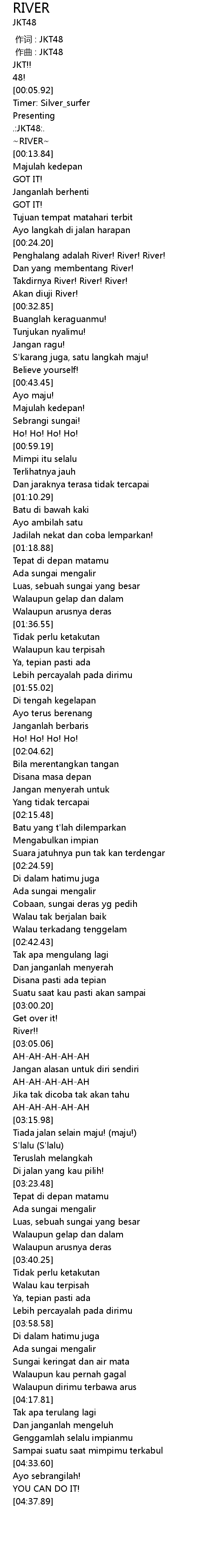 | [00:24.57] | Penghalang adalah River! River! River! |
