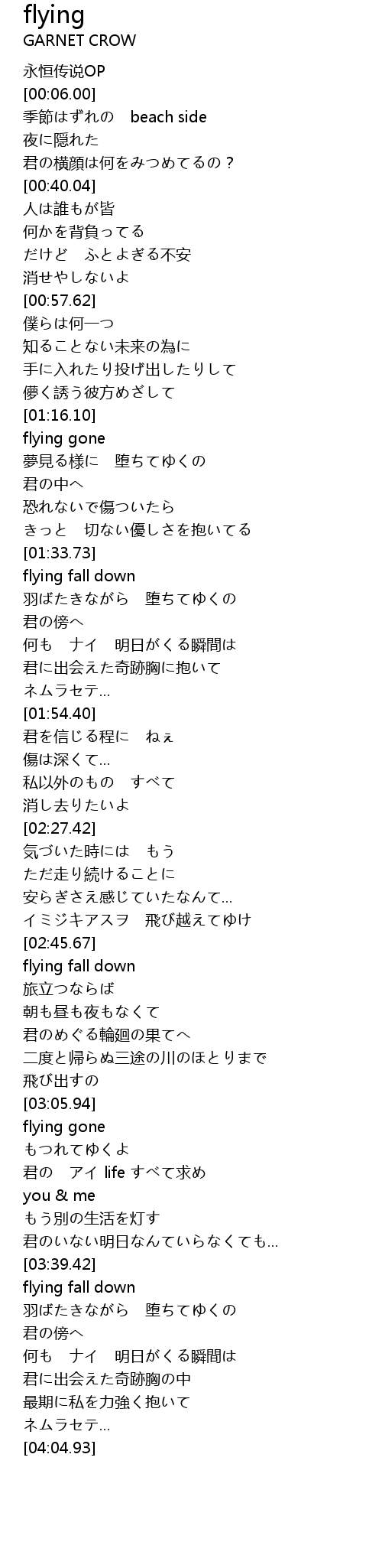 | [03:40.00] | flying fall down |