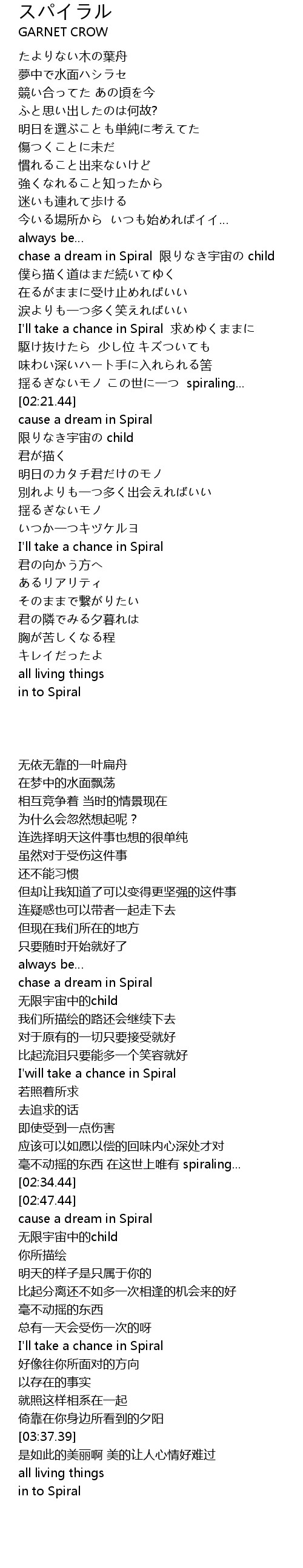 | [02:55.33] | cause a dream in Spiral |