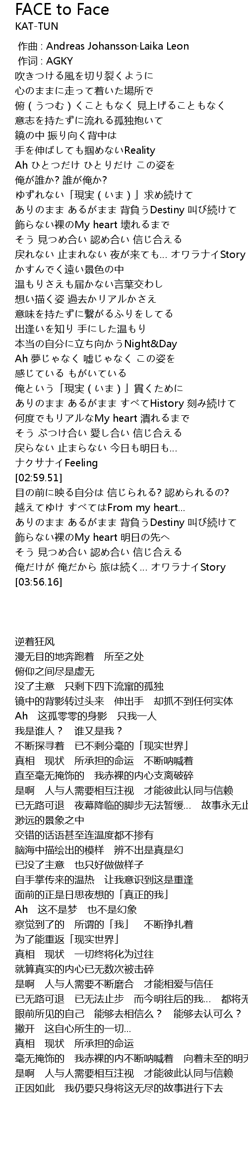 | 歌曲 | FACE to Face |