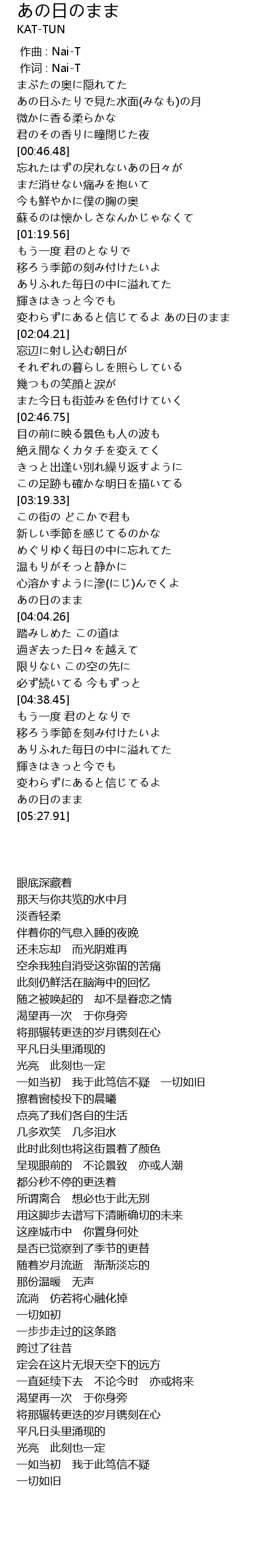 | [00:54.34] | まだ消せない痛みを抱いて |