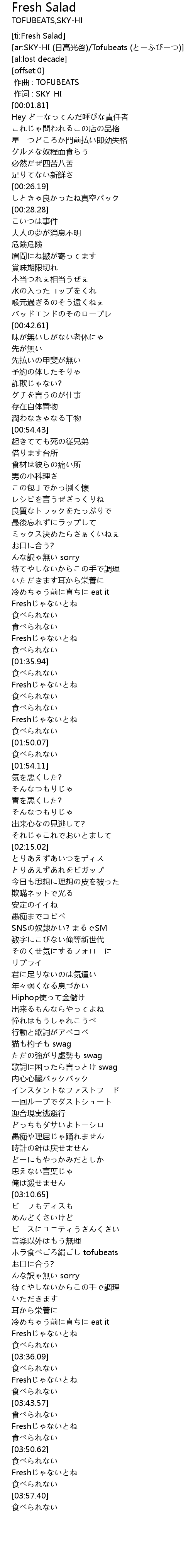 | [03:54.00] | Fresh |
