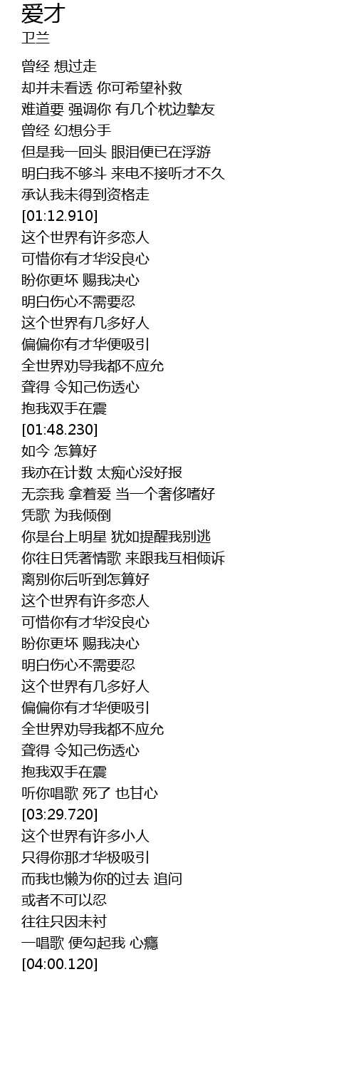 | [03:33.380] | 只得你那才华极吸引 |