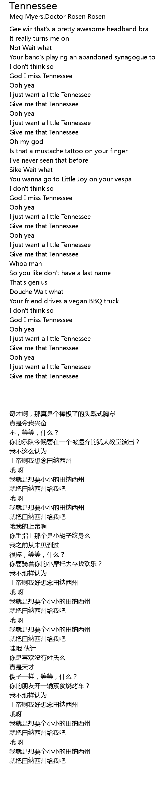 Tennessee 歌词