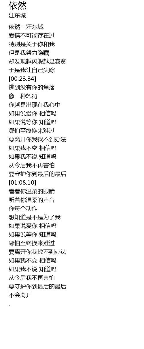 | [00:00.53] | 依然 - 汪东城 |