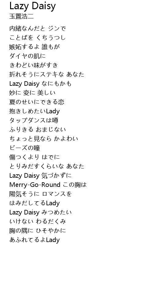 | [02:12.63] | Lazy Daisy 気づかずに |