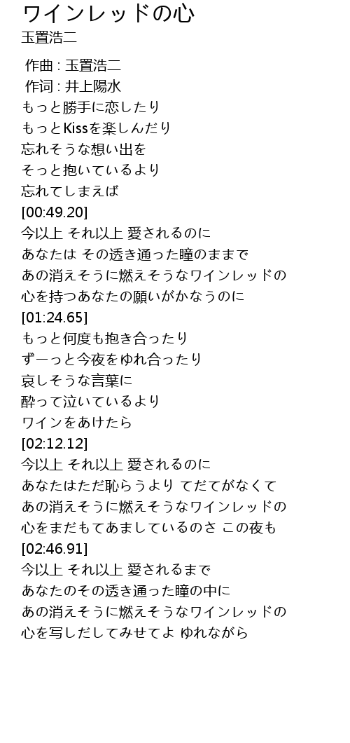 | [01:05.79] | あの消えそうに燃えそうなワインレッドの |